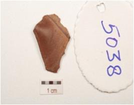 | Description / विवरण | A scraper made on chert, bulb of percussion on the ventral side, prepared platform at proximal end and use wear marks along the cutting edges. |