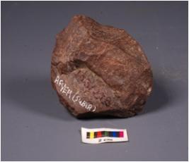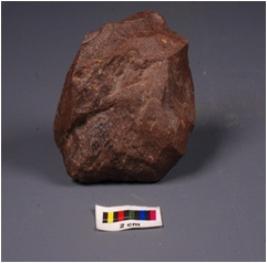 | Description / विवरण | A core tool made on quartzite with six flake scars on the dorsal side. |