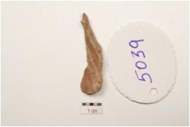 | Description / विवरण | A flake made of chert, mid ridge on dorsal and use wear marks along the cutting edges. |