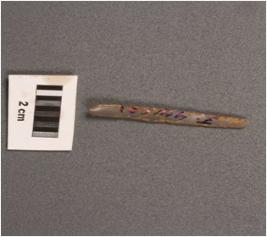 | Description / विवरण | Parallel sided microlithic blade with use-wear marks on cutting edges, prominent mid ridge on dorsal surface, triangular in section and prominent bulb on ventral. |