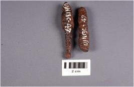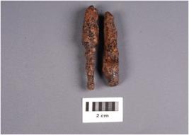 | Description / विवरण | Two fragments of an iron arrowhead with corroded surface and intact shaft. |
