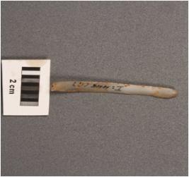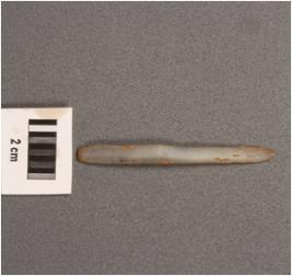 | Description / विवरण | Parallel, sided microlithic blade with use wear marks on cutting edges, prominent mid-ridge on dorsal prominent bulb on ventral and broken distal end. |