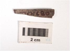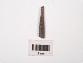 | Description / विवरण | Fragment of a point on charred bone, black in colour and broken pointed tip. |