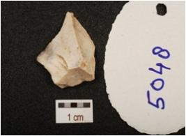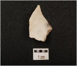 | Description / विवरण | A flake made on chert, flake scars on the dorsal surface and wavy cutting edges. |
