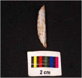 | Description / विवरण | Blade, made on chalcedony mid ridge on dorsal ventral surface is smooth both end is pointed and use wear marks on edge. |