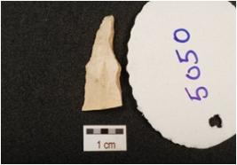 | Description / विवरण | A flake made on chert, blade scars on the dorsal side, flat one side and pointed distal end. |