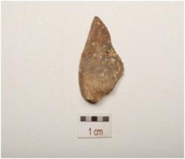 | Description / विवरण | A flake made on chert bulb on the ventral side, prepared platform on proximal end and pointed distal end. |