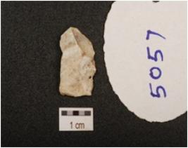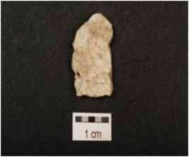 | Description / विवरण | A flake made on chert, flake scars on the dorsal side and use wear marks along one lateral side. |