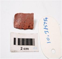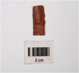 | Description / विवरण | Parallel sided chert blade, two-ridge on ventral, use-wear marks on edges, distral top, defused bulb on proximal end, red in colour. |