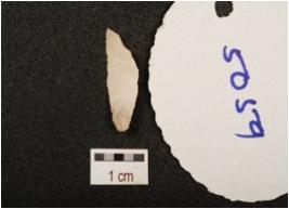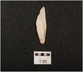 | Description / विवरण | A blade made on chert, mid ridge on the dorsal side, bulb on the ventral and pointed distal end. |