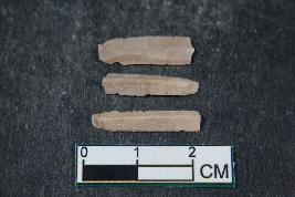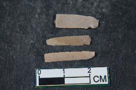 | Description / विवरण | Fragments of blades with one dorsal ridge each having smooth surface. One fragment along with three dorsal ridges has length equivalent to 1.7 cm. |
