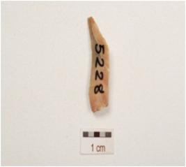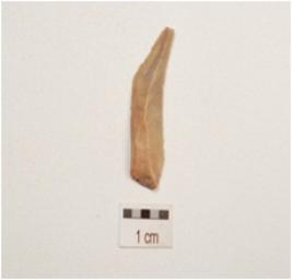 | Description / विवरण | A chert blade with a prominent ridge on dorsal side, pointed along at distal end, use wear marks along at cutting edges and triangular in section. |