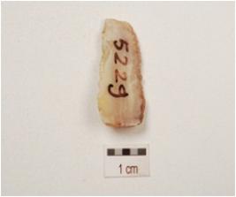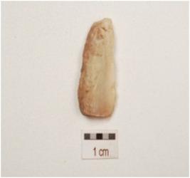 | Description / विवरण | Chalcedony parallel sided blade with a ridge on dorsal side, prepared platform, irregular retouches along cutting edge and triangular in section. |