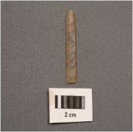 | Description / विवरण | A parallel sided blade with use-wear marks on cutting edges, two ridge, trapezoidal section and prominent bulb on ventral. |