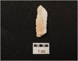 | Description / विवरण | Chert parallel sided blade with a prominent ridge and partly visible cortex on dorsal side, partly broken striking platform, use wear marks on cutting edges and triangular in section. |