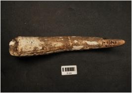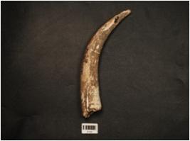 | Description / विवरण | Antler horn with partly polished and rough surface, broken and mended. |