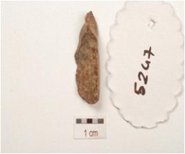 | Description / विवरण | Chert parallel sided blade with a mid ridge on dorsal side, striking platform, use wear marks on cutting edges and triangular in section. |