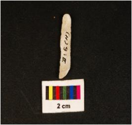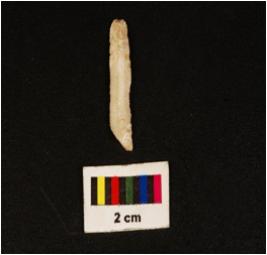 | Description / विवरण | Parallel sided microlithic blade with use wear marks on cutting edges double ridge on dorsal. Diffused bulb on proximal end and trapezoid in section. |
