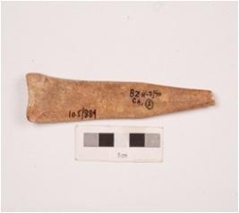 | Description / विवरण | Fragment of bone point plano-convex in section, polished both sides and smooth surface. |