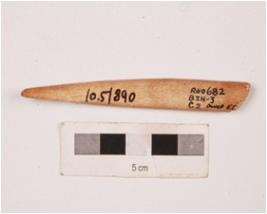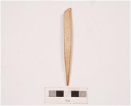 | Description / विवरण | Fragment of pointed arrow head bone point rectangular in section, polished both sides and smooth surface. |