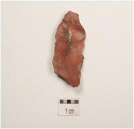 | Description / विवरण | Chert parallel sided blade with improminent ridges on dorsal side, striking platform partly broken distal end, irredgular retouches on cutting edges and partly triangular in section. |