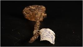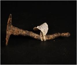 | Description / विवरण | Iron nail with a round base, rusted and chemically treated. |