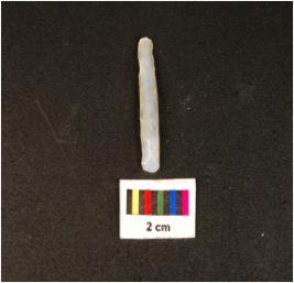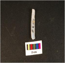 | Description / विवरण | Parallel sided microlithic blade with use wear marks on cutting edges and wavy mid ridge on dorsal. Triangular in section and diffused bulb on ventral. |