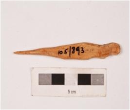 | Description / विवरण | Fragment of bone point polished both sides, rectangular in section and smooth surface. |