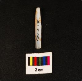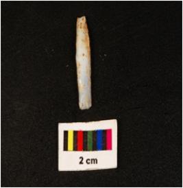 | Description / विवरण | Parallel sided blade with prominent double ridge on dorsal , trapezoidal in section, diffused bulb on ventral , use wear mark along the cutting edges and broken at distal end. |