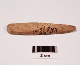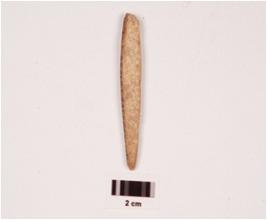 | Description / विवरण | A bone point polished both sides and porous on the surface. |
