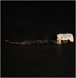 | Description / विवरण | Fragment of iron nail, head broken, thick end rusted and chemically treated. |