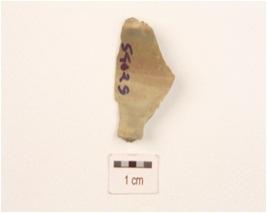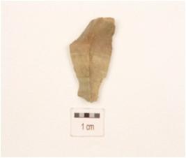 | Description / विवरण | A flake made on chert, flake scars on surface and diffused bulb on ventral side. |