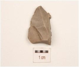 | Description / विवरण | A flake made on chert, uneven surface, irregular in shape and diffused bulb on ventral side. |