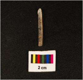 | Description / विवरण | Parallel sided blade, with prominent mid ridge on dorsal , diffused bulb on ventral, broken at distal end, triangular in section and use wear mark along the cutting edges |