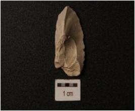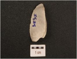 | Description / विवरण | A flake made on chert, flake scars on dorsal and diffused bulb on ventral. |