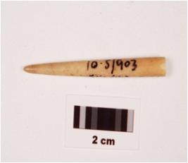 | Description / विवरण | A bone point polished both sides, circular in section and smooth surface. |