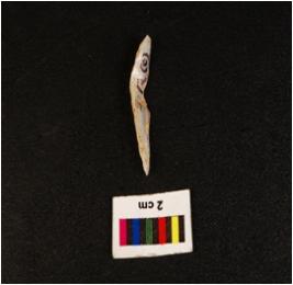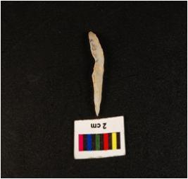 | Description / विवरण | A microlith point with two ridges on dorsal bulb on ventral side and triangular in section. |