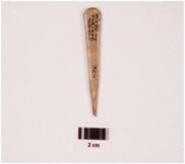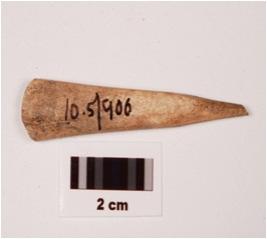 | Description / विवरण | Fragment of pointed arrow head bone, rectangular in section, polished both sides and smooth surface. |