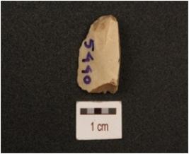 | Description / विवरण | A flake made on chert, uneven surface and use-wear marks on edges. |