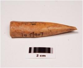 | Description / विवरण | Fragment of bone point small in shaped circular in section and smooth surface. |