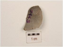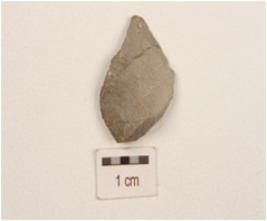 | Description / विवरण | A flake made on chert, uneven surface, diffused bulb on ventral side and use wear marks on edges. |