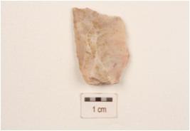 | Description / विवरण | A flake made on chert, flake scars on dorsal side, diffused bulb on ventral side and use wear marks on edges. |