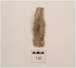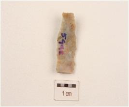 | Description / विवरण | A flake made on chert, uneven dorsal and diffused bulb on ventral side. |