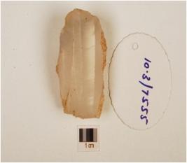 | Description / विवरण | A fluted core made by chalcedony, six blade scars on the surface and cortex on surface. |