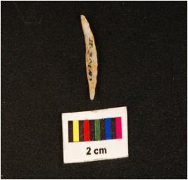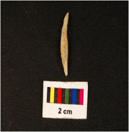 | Description / विवरण | Pen knife shaped chalcedony blade, two-ridges on dorsal, flat ventral pointed distal end and use wear edges. |