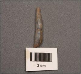 | Description / विवरण | A parallel sided blade with prominent mid-ridge on dorsal , use-wear marks on cutting edges and both ends are broken. |