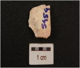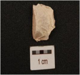 | Description / विवरण | A flake made on chert, uneven surface and use wear marks on edges. |