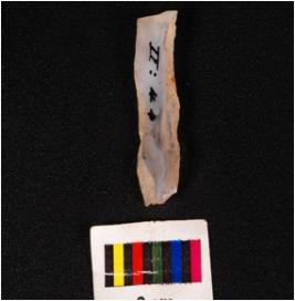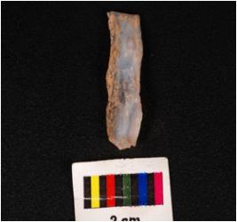 | Description / विवरण | A parallel sided blade of chalcedony with two ridges on the dorsal prominent bulb on the ventral use-ware marks on cutting edges and triangular in section. |