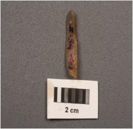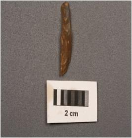 | Description / विवरण | Parallel sided microlithic blunted blade with a ridge on dorsal , diffused bulb on ventral , pointed at distal end and raw material given heat treatment. |