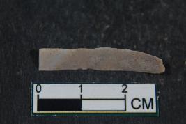 | Description / विवरण | Fragment of blade with one dorsal ridge and smooth surface. |